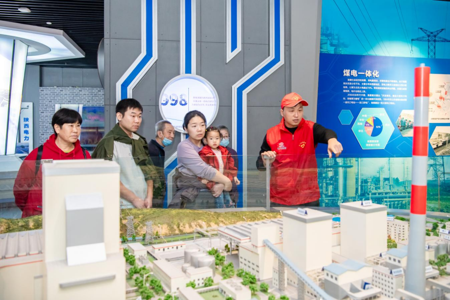 “大家看,煤炭在這個(gè)龐大的鍋爐里經(jīng)過(guò)高效燃燒,加熱水產(chǎn)生高溫高壓水蒸汽,推動(dòng)汽輪機(jī)帶動(dòng)發(fā)電機(jī)高速轉(zhuǎn)動(dòng),就能產(chǎn)生電了。”在煤海之光展廳內(nèi),陜西省技術(shù)能手、“五一勞動(dòng)獎(jiǎng)?wù)隆鲍@得者任江昆正圍著清水川電廠的模型進(jìn)行講解。“叔叔,這個(gè)煙筒里面冒出來(lái)的東西會(huì)污染空氣嗎?”一個(gè)小男孩托著腦袋一臉疑惑。任江昆笑著回應(yīng):“現(xiàn)在電廠的煙筒都配有先進(jìn)的脫硫、脫硝和除塵設(shè)備,排出的大多是水蒸氣,不會(huì)污染空氣。”那些關(guān)于發(fā)電的專業(yè)知識(shí),在他的講述中變得鮮活有趣,生動(dòng)的講解引得游客們頻頻點(diǎn)頭。