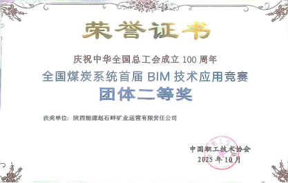 截至目前,該項目共取得專利3項、軟件著作權(quán)2項、發(fā)表核心論文3篇、制定企業(yè)標(biāo)準(zhǔn)2部,榮獲全國煤炭系統(tǒng)首屆BIM技術(shù)應(yīng)用競賽金牌、團(tuán)體二等獎等多項榮譽(yù)。