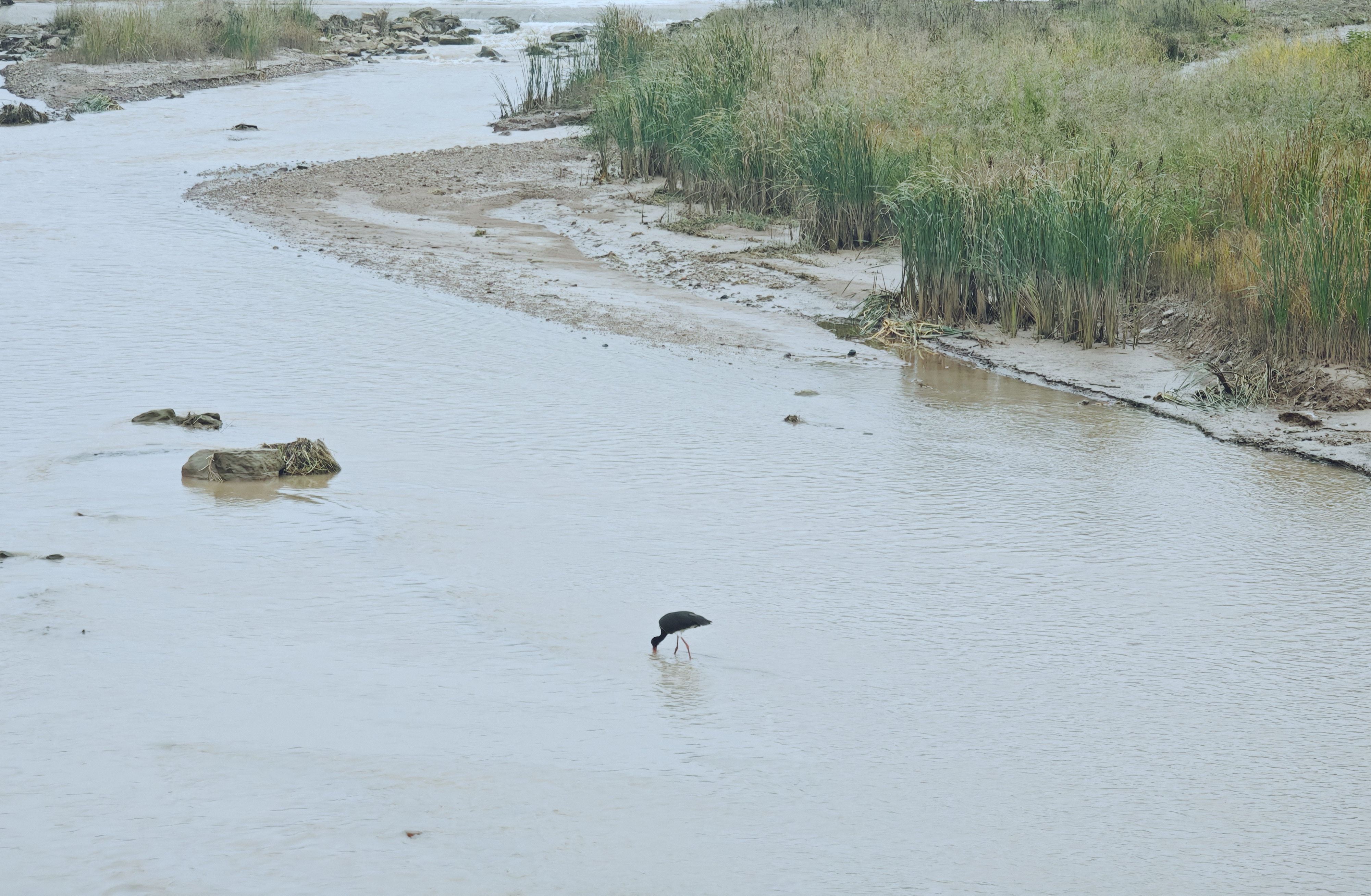 近日,被譽(yù)為“鳥中大熊貓”的國(guó)家一級(jí)保護(hù)動(dòng)物黑鸛現(xiàn)身麟北煤業(yè)廠區(qū)前的天堂河淺灘。它們或靜立覓食,或振翅盤旋,黑褐色羽衣泛著金屬光澤,鮮紅喙腳與水面相映成趣,成為企業(yè)綠色發(fā)展成果的生動(dòng)詮釋。